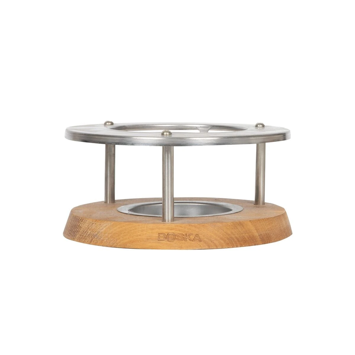 Geniet nu nog langer van je kaasfondue met het Fondue Onderstel Oslo. Plaats je Boska fonduepan op dit onderstel van roestvrijstaal en eikenhout. De inbegrepen brander houdt de gesmolten kaas urenlang warm.