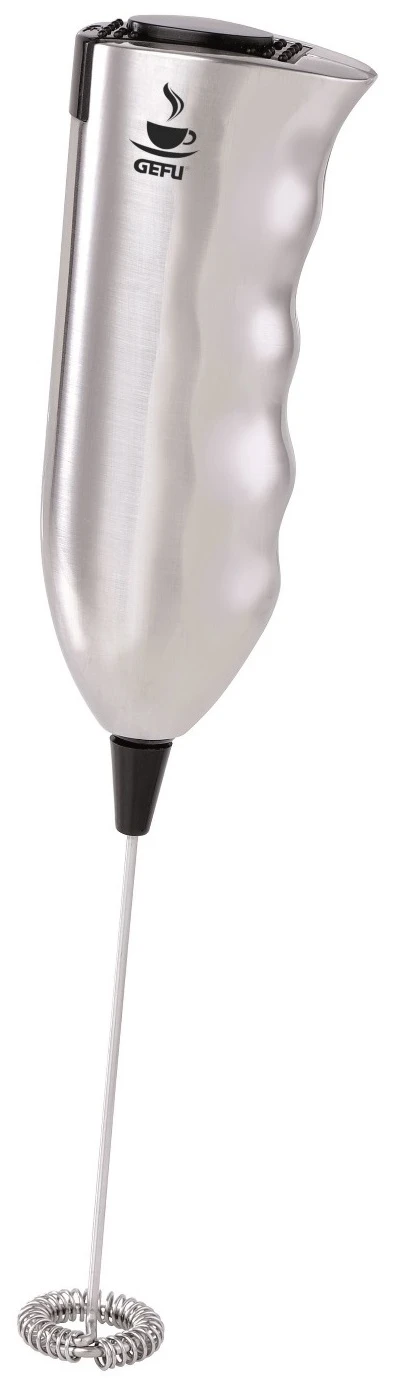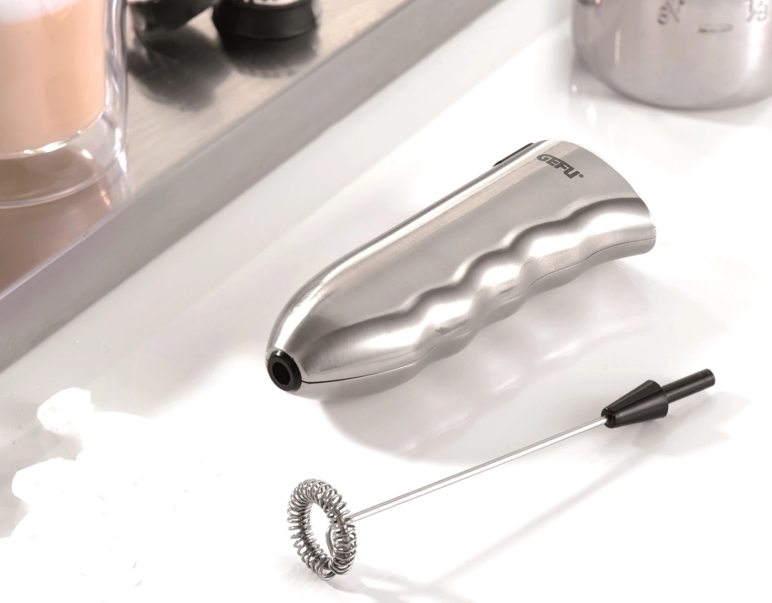 Met de Gefu Melkopschuimer Marcello is je melk luchtig opgeschuimt metéén druk op de knop. Daarnaast is de melkopschuimer comfortabel in gebruik dankzij het soft-touch oppervlak. De melkopschuimer werkt op 2 x AA batterijen, de batterijen zijn inbegrepen. De melkopschuimer is naast het opschuimen van melk, ook geschikt voor het bereiden van saus of dressing. Daarnaast is de melkopschuimer ook gemakkelijk te gebruiken voor smoothies of cocktails. De garde kan na gebruik gereinigd worden in de vaatwasmachine.