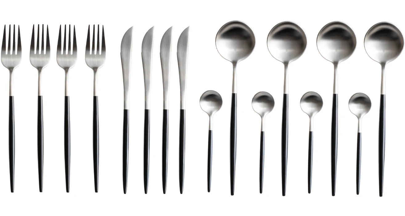 Kan je besteklade wel wat opvulling gebruiken? Met de Jay Hill bestekset gemaakt van RVS haal je een 16-delige set in huis. Dit eigentijdse en opvallende bestek geeft je gedekte tafel een stijlvolle uitstraling. Het zilveren bestek heeft een brede bovenkant met een zwart en smal heft.