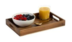 Met het Jay Hill dienblad geniet je lekker van je ontbijtje op bed. Het dienblad heeft een afmeting van 35 x 22 cm en is daarmee geschikt voor รฉรฉn persoon. Het dienblad is gemakkelijk te tillen door de opstaande randen met opening. Het dienblad is ook te gebruiken als decoratie, om bijvoorbeeld een aantal kaarsen op te zetten.