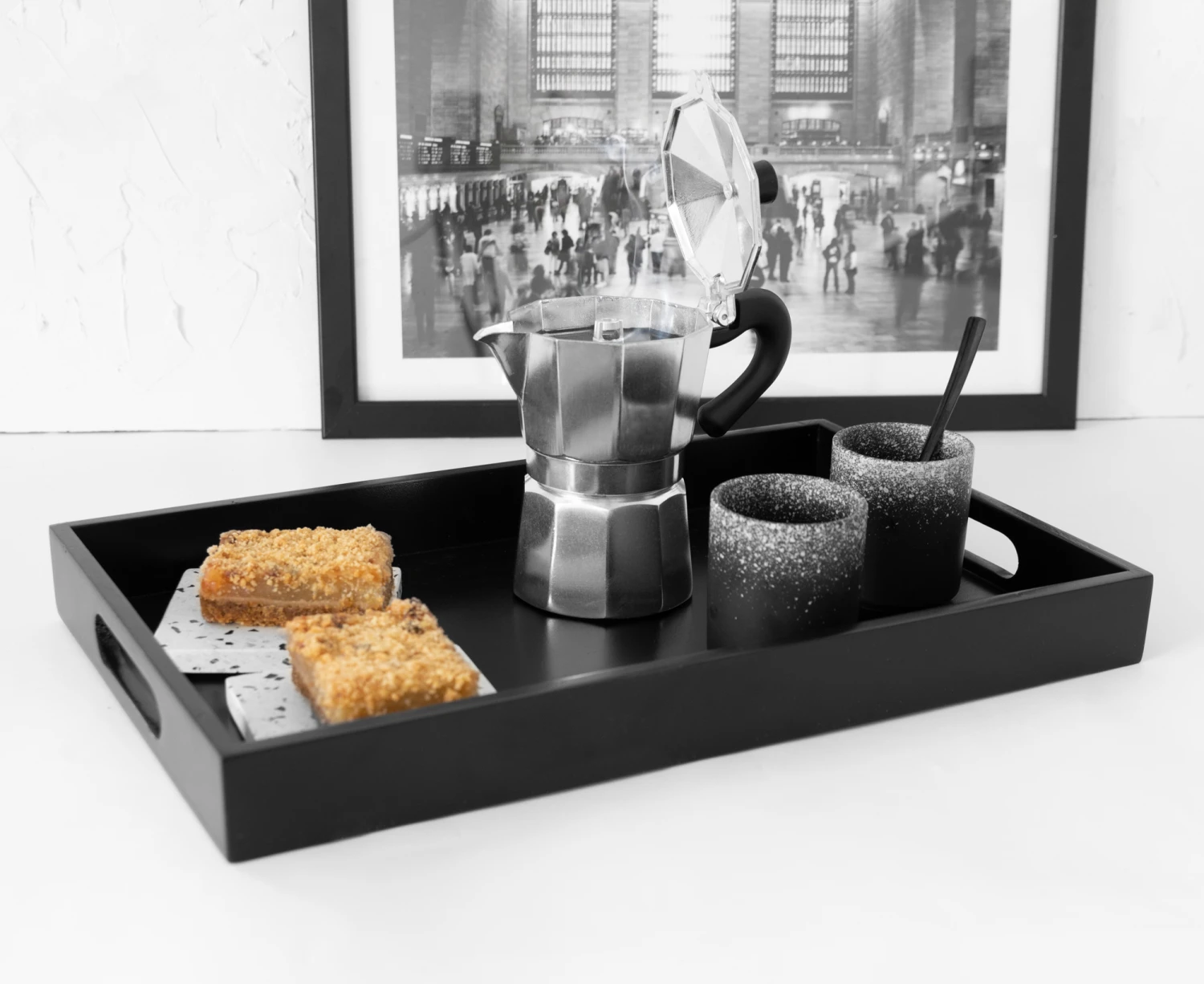 Met het Jay Hill dienblad serveer je eenvoudig hapjes en drankjes of een ontbijtje op bed. Het dienblad heeft een afmeting van 40 x 25 cm. Het dienblad is gemakkelijk te tillen door de opstaande randen met opening. Het dienblad is ook te gebruiken als decoratie, om bijvoorbeeld een aantal kaarsen op te zetten.