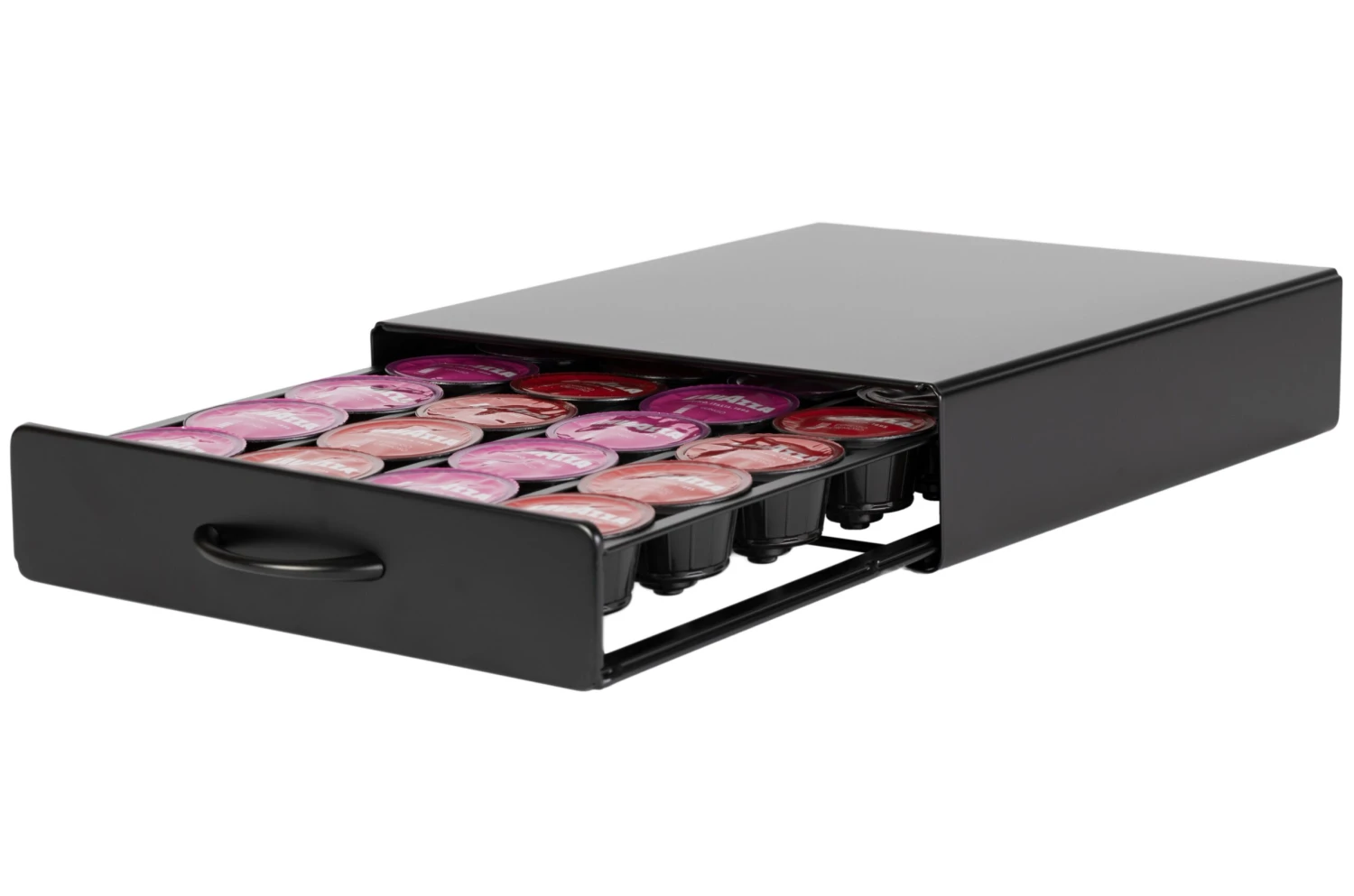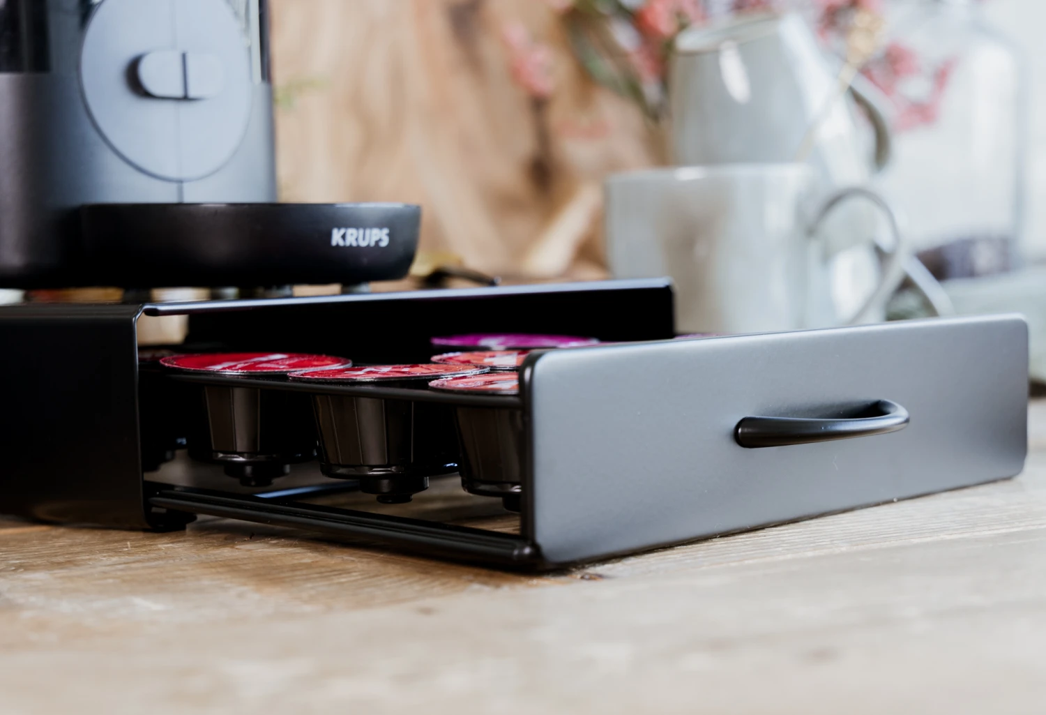 Los slingerende Dolce Gusto © cups zijn verleden tijd met deze Jay Hill Dolce Gusto Cuphouder Lade. De cuphouder is geschikt voor 20 Dolce Gusto cups en is zeer efficiënt. Plaats namelijk je favoriete Dolce Gusto apparaat op deze standaard (max. 10 kilo) en je hebt alles bij elkaar om een heerlijk bakje koffie te zetten. Deze Jay Hill Cuphouder verschuift niet, want hij is voorzien van antislip pootjes, heel handig!