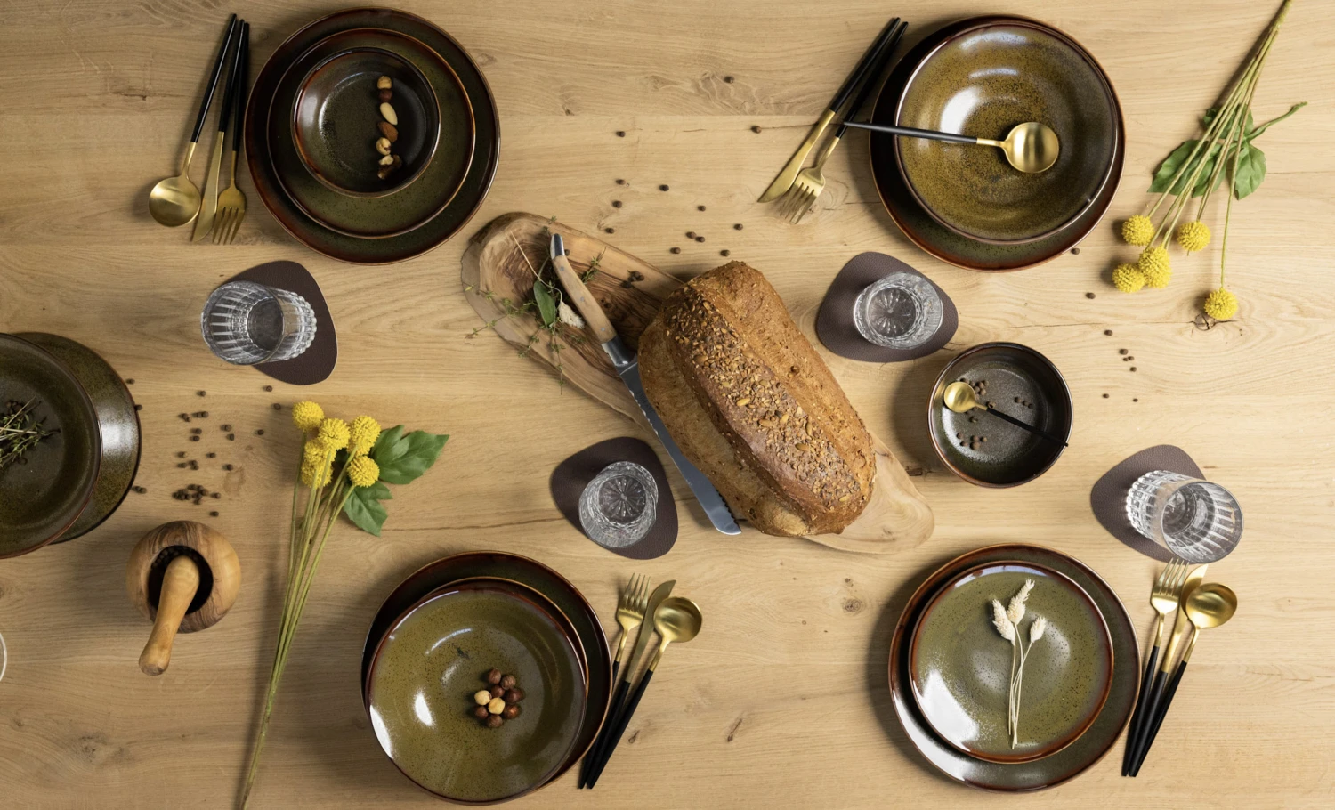 Deze bruin gekleurde serviesset staat prachtig op vrijwel iedere gedekte tafel. Met de set kan je 4 personen voorzien van een volledige maaltijd. Aangezien er veel handwerk bij komt kijken is ieder product uniek. Na gebruik te hebben gemaakt van de set kan het zo de vaatwasser in. Dat is makkelijk!