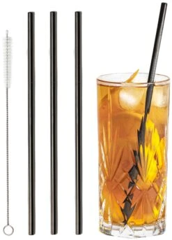Zijn kartonnen en plastic rietjes die slap worden ook zo’n ergernis voor jou? Dat snappen wij helemaal. Met deze herbruikbare Cookinglife rietjes is een kartonnen smaak verleden tijd! Geniet optimaal van jouw drankje met deze zwarte rietjes gemaakt van RVS. Deze rechte rietjes zijn 21.5 cm en daardoor ook perfect voor hoge glazen, zoals longdrinkglazen. De set bestaat uit 4 stuks.
