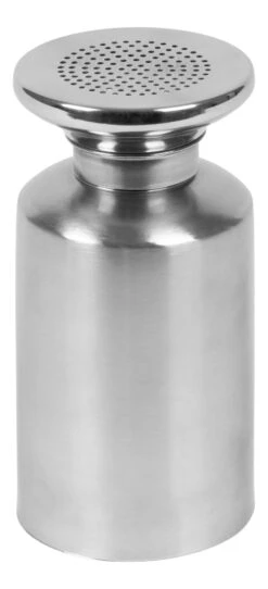 Deze zoutstrooier van Cookinglife is een goede aanwinst voor in de keuken. De zoutstrooier is van aluminium, heeft een diameter van 8 cm en een hoogte van 16 cm. Het RVS geeft de strooier een industriële look. Naast zout kun je de strooier ook gebruiken voor cacaopoeder, poedersuiker of peper.